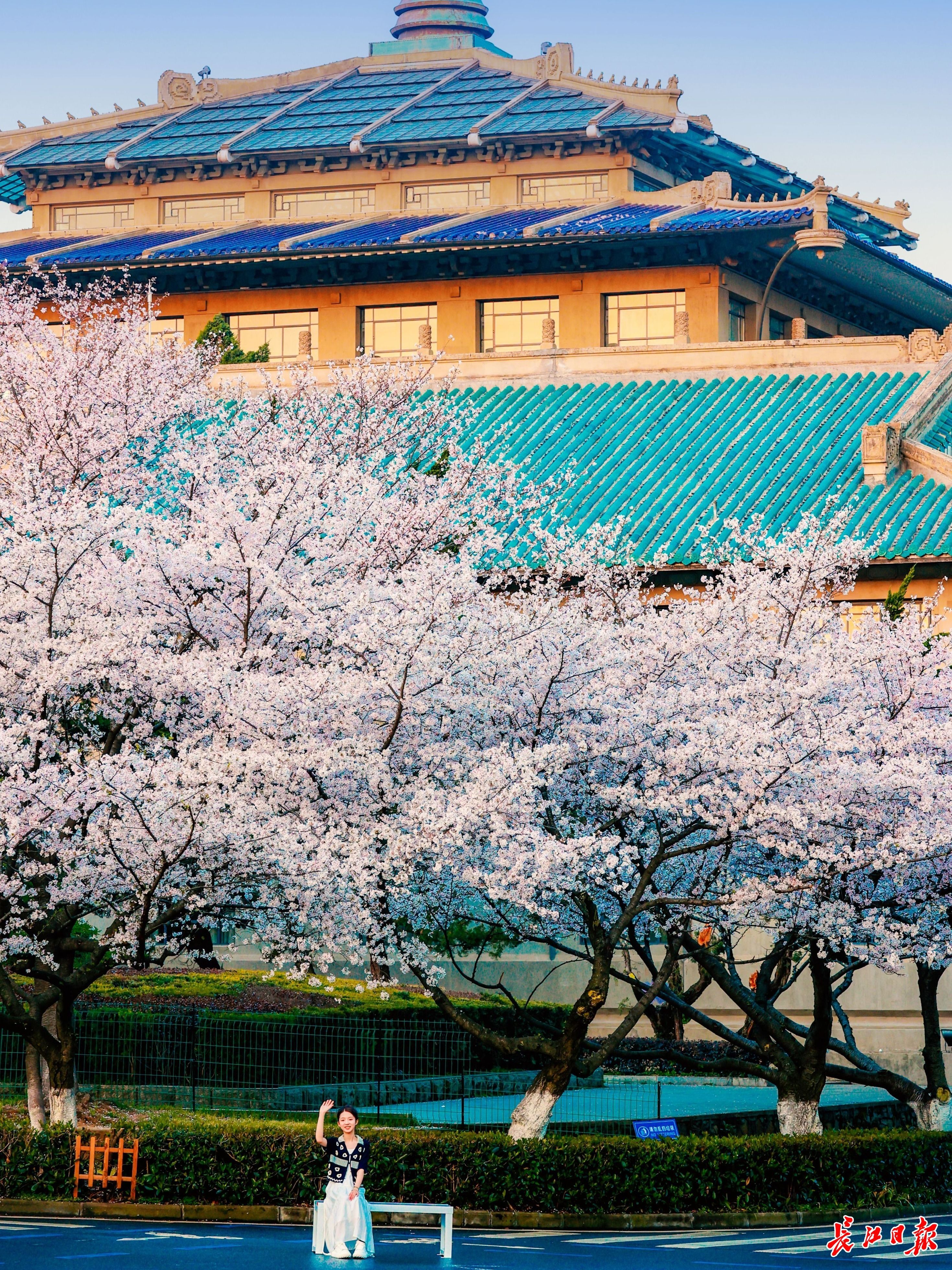 武漢大學(xué)櫻花盛放。(圖源:長江日?qǐng)?bào)城市攝影隊(duì))