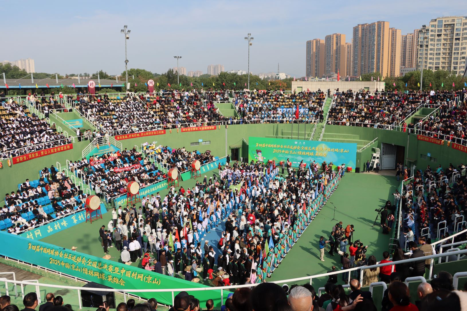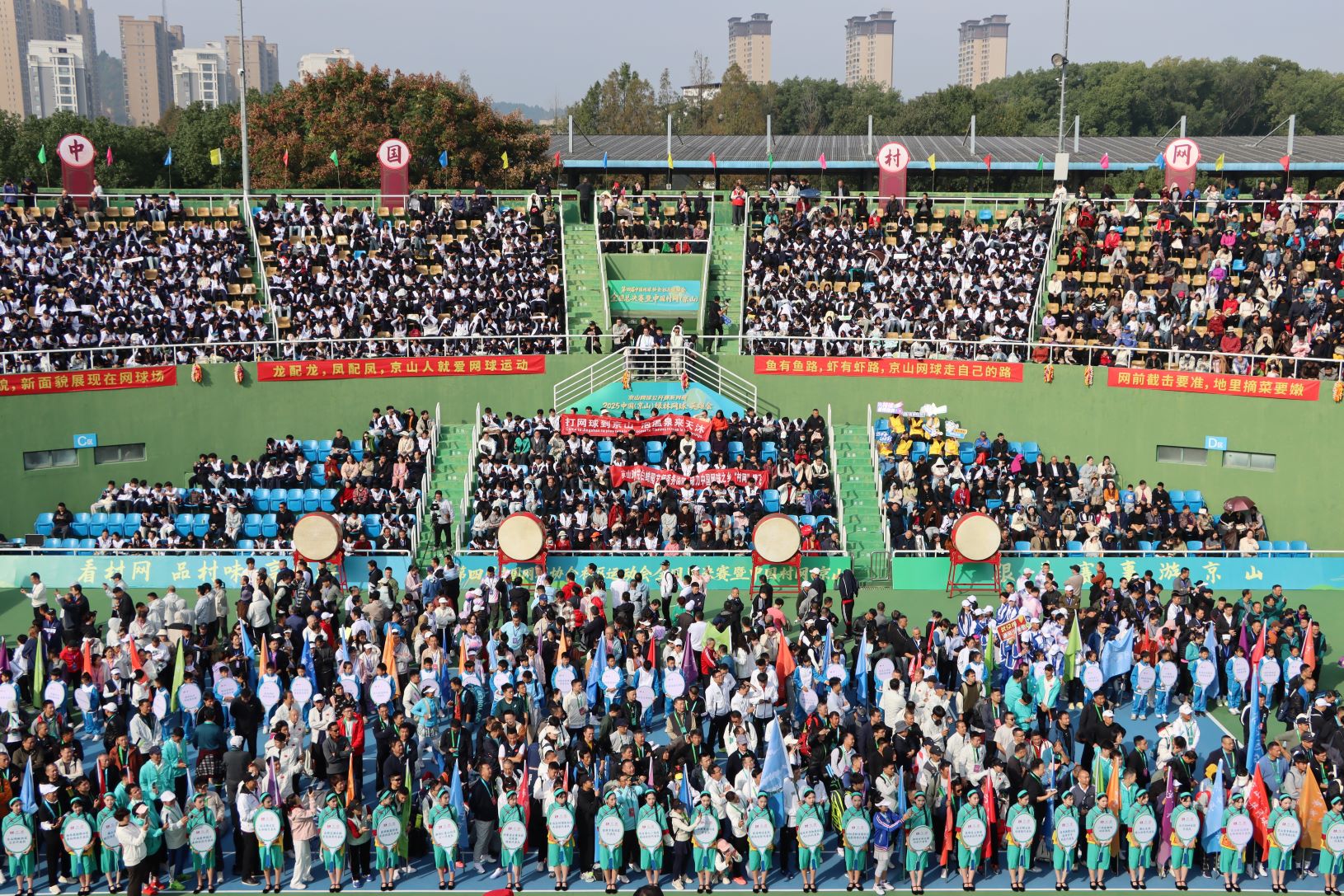 11月1日,第四屆中國網(wǎng)球協(xié)會社區(qū)運動會全國總決賽暨中國村網(wǎng)(京山)、中國(京山)綠林網(wǎng)球·英雄會、“一球成名”網(wǎng)球賽開幕式在文峰公園中心網(wǎng)球場舉行。三項賽事共吸引全國64支隊伍的800多名網(wǎng)球愛好者齊聚京山,共同參與這場網(wǎng)球盛會。