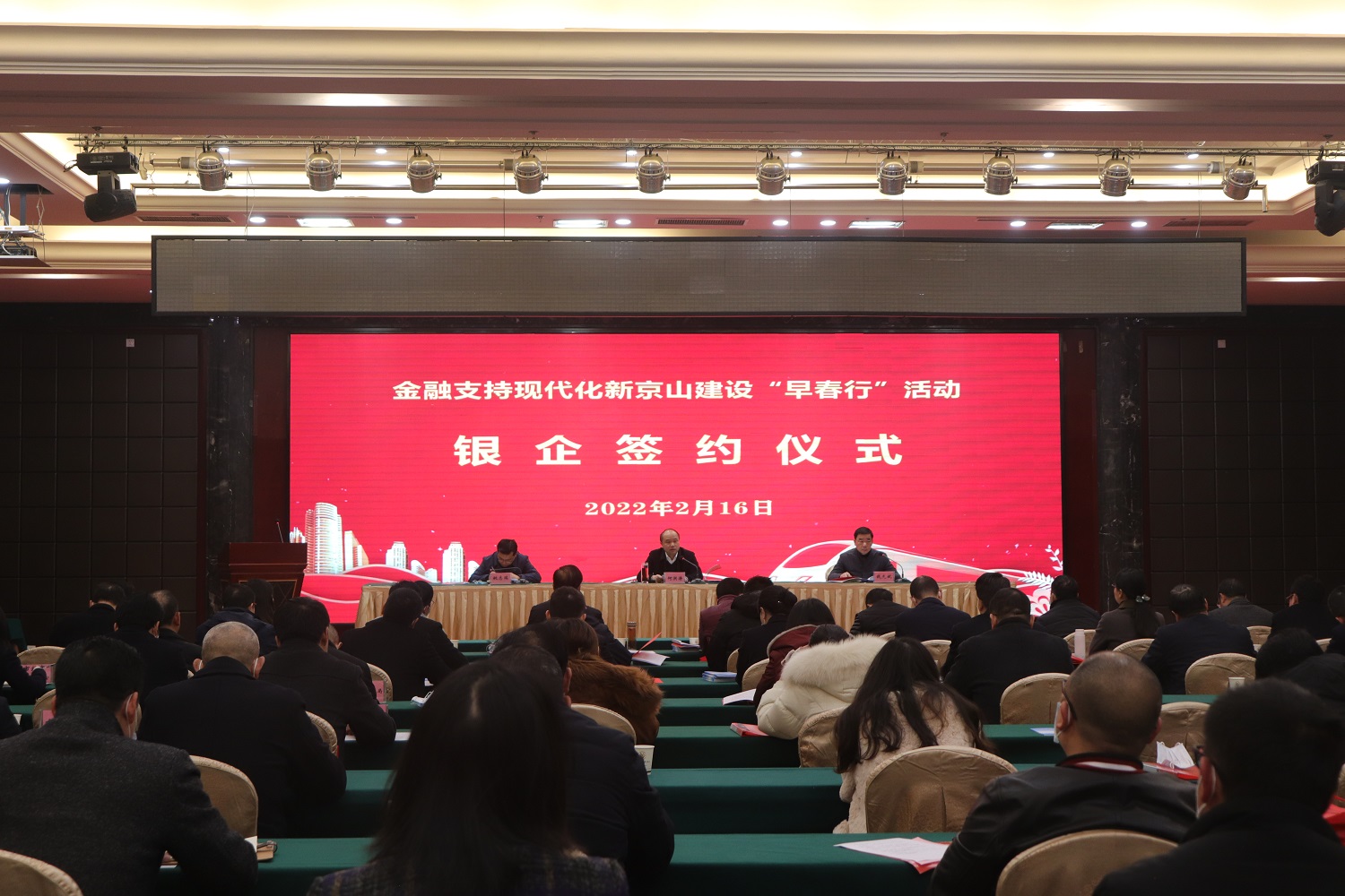 2月16日上午,金融支持現(xiàn)代化新京山建設(shè)“早春行”銀企簽約大會在豪威酒店召開。市委副書記、市長何洪濤出席會議并講話。他強調(diào),要落實全市深入優(yōu)化營商環(huán)境暨首屆企業(yè)家大會精神,推動政銀企面對面溝通、點對點