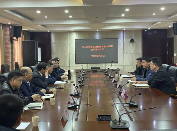 3月28日,京山市生活垃圾焚燒發(fā)電PPP項(xiàng)目在市城市管理執(zhí)法局二樓會(huì)議室舉行合同簽約儀式。市城市管理執(zhí)法局黨組書(shū)記、局長(zhǎng)汪波,湖北省生態(tài)環(huán)保公司副總經(jīng)理談皓、安徽海創(chuàng)綠能環(huán)保集團(tuán)股份有限公司副總經(jīng)理汪