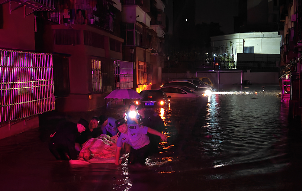 4月28日凌晨,我市暴雨來襲,最大降水量達70mm,造成城區(qū)某小區(qū)多名群眾被困。在接到警情后,市公安局收到緊急求助警情,第一時間組織新市派出所、巡特警大隊民警,聯(lián)合市應(yīng)急部門趕赴現(xiàn)場進行施救。由于地勢