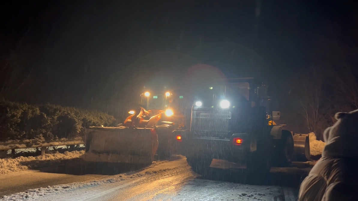 2月21日晚,三陽鎮(zhèn)組織全體機關(guān)干部、鎮(zhèn)直單位、各村(社區(qū))黨員群眾共計70余人出動2臺挖機、12臺鏟車、2臺灑水車、13輛工作轉(zhuǎn)運車、6輛作業(yè)引導(dǎo)警戒車,通宵鏖戰(zhàn),對許廣高速三陽路段進(jìn)行鏟雪除冰作業(yè)