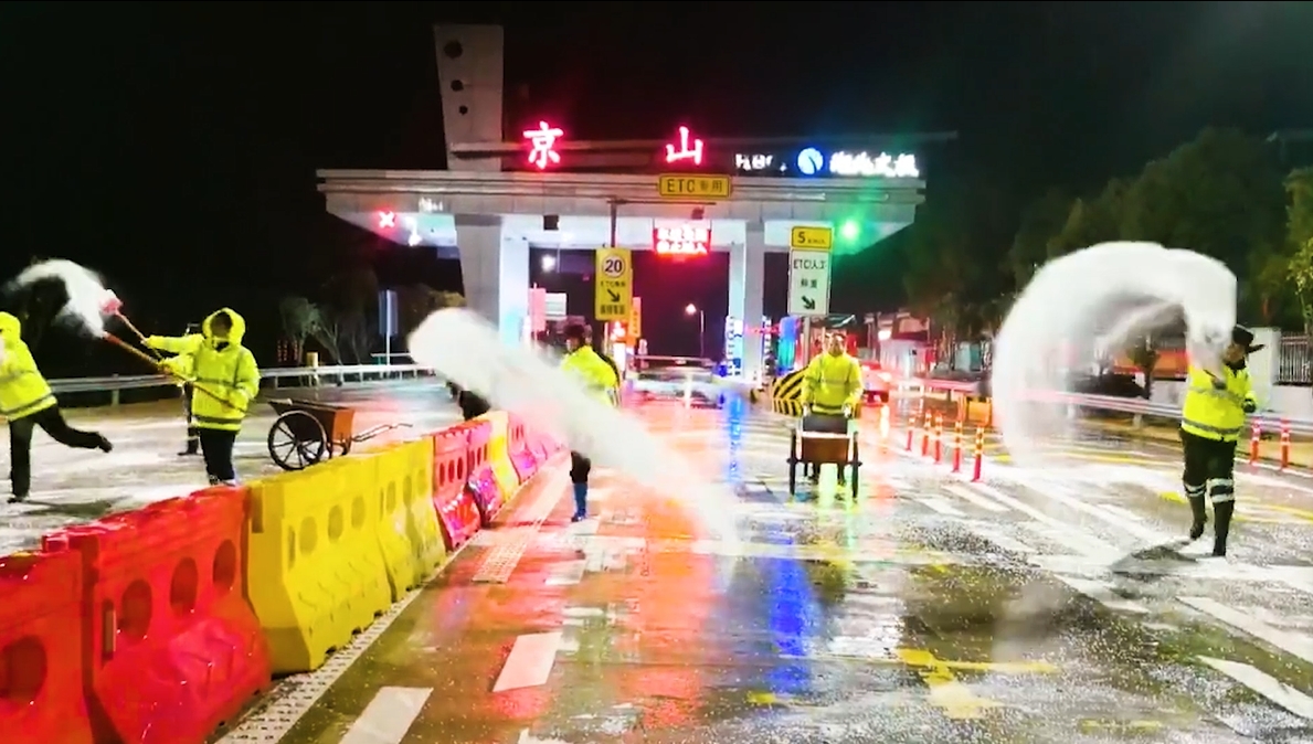 石龍鎮(zhèn)在武荊高速武漢方向石龍段開展除冰作業(yè)
