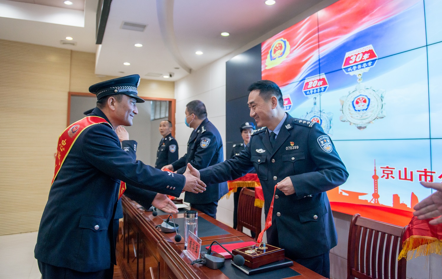 黃華軍向授予紀(jì)念章的民警表示誠摯祝賀,對授銜新警予以期望。他表示,京山公安實(shí)現(xiàn)的每一次跨越、取得的每一次輝煌都離不開奉獻(xiàn)一生的榮休老同志、持續(xù)奮戰(zhàn)的中流砥柱和砥礪奮進(jìn)的逐夢青年。