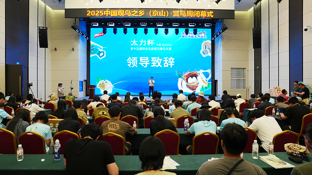 6月15日上午,由太力集團(tuán)冠名贊助的2025中國(guó)觀鳥(niǎo)之鄉(xiāng)(京山)賞鳥(niǎo)周暨“太力杯”中國(guó)(京山)第十五屆野生鳥(niǎo)類觀鳥(niǎo)攝鳥(niǎo)大賽閉幕式和頒獎(jiǎng)典禮在天沐溫泉酒店宴會(huì)廳舉行。