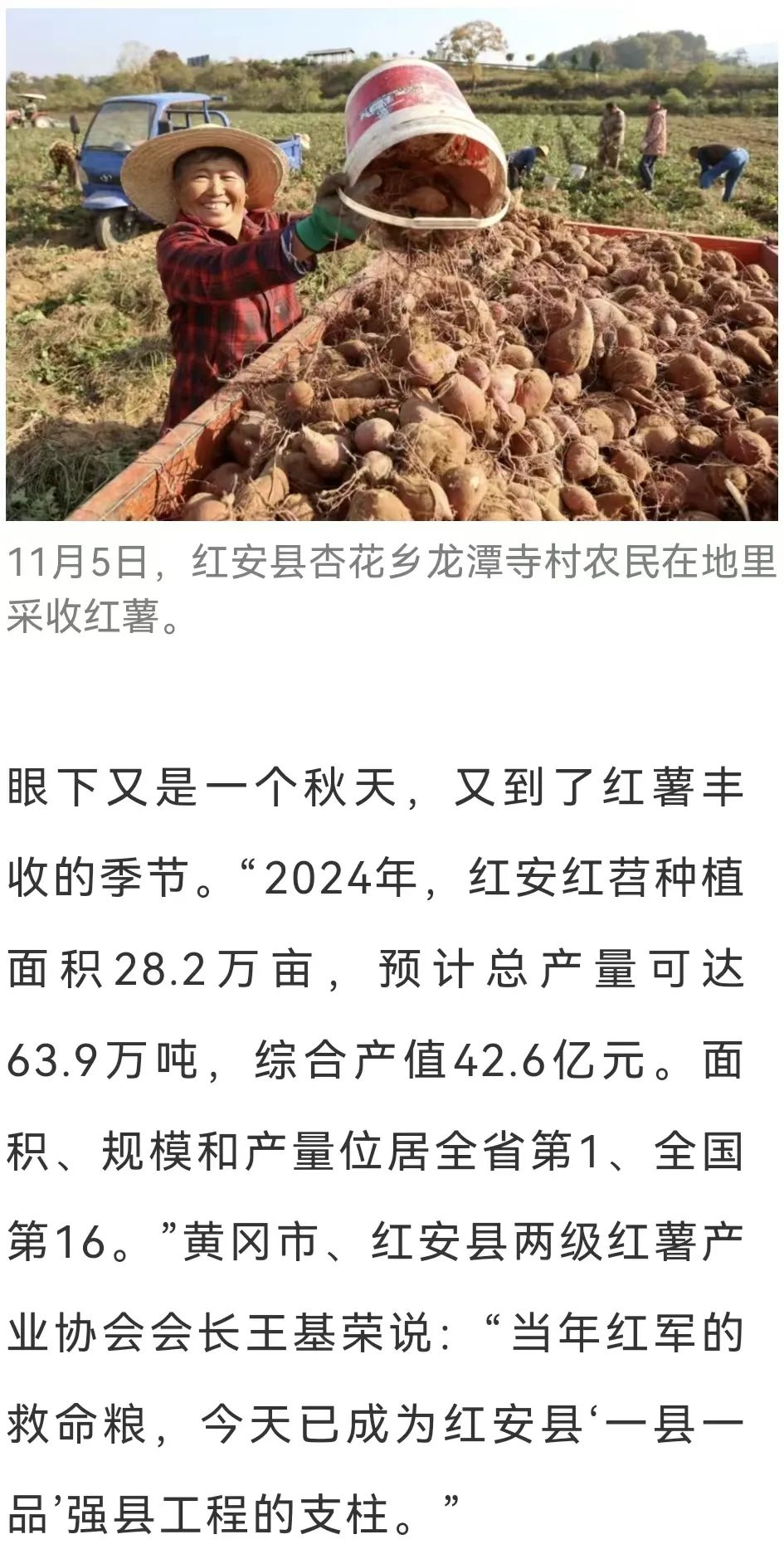 2019年秋,華中農(nóng)業(yè)大學(xué)副教授蔡興奎,受紅安縣瑞灃種植養(yǎng)殖專業(yè)合作社理事長(zhǎng)姚峰之邀,來紅安考察紅薯產(chǎn)業(yè)發(fā)展時(shí),就曾看到大片紅薯爛在地里。