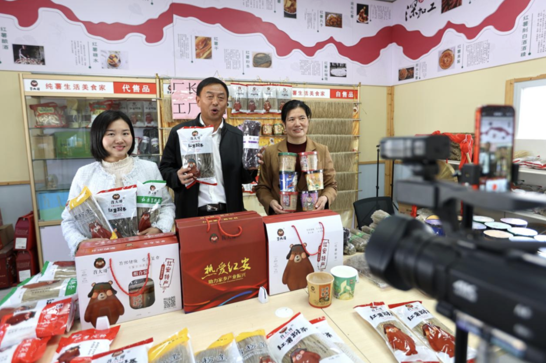 銷售決定生產(chǎn),市場(chǎng)決定命運(yùn)。近年來,紅安縣通過走出去參加粵港澳大灣區(qū)農(nóng)產(chǎn)品產(chǎn)銷對(duì)接會(huì)、第十屆北京農(nóng)業(yè)嘉年華等展銷活動(dòng),請(qǐng)進(jìn)來舉辦紅安苕訂單種植收購(gòu)簽約會(huì),線上線下共同發(fā)力等途徑,不斷拓展紅薯銷售渠道,推動(dòng)紅安紅薯走出紅安、走向全國(guó)、邁向國(guó)際。目前,在線上,紅安紅薯主要通過苕大哥、瑞灃農(nóng)業(yè)、紅土優(yōu)選等紅苕電商直播基地網(wǎng)絡(luò)銷售;線下,鮮食紅薯主要銷往廣州、武漢四季美農(nóng)貿(mào)市場(chǎng)及大專院校、機(jī)關(guān)食堂等;鮮食加工產(chǎn)品主要銷往本地加工企業(yè)及福建等地客商。2023年,七里坪鎮(zhèn)福德橋村與美國(guó)理想食品簽訂300噸產(chǎn)值660萬元的粉絲訂單,紅安紅薯成功走出國(guó)門。