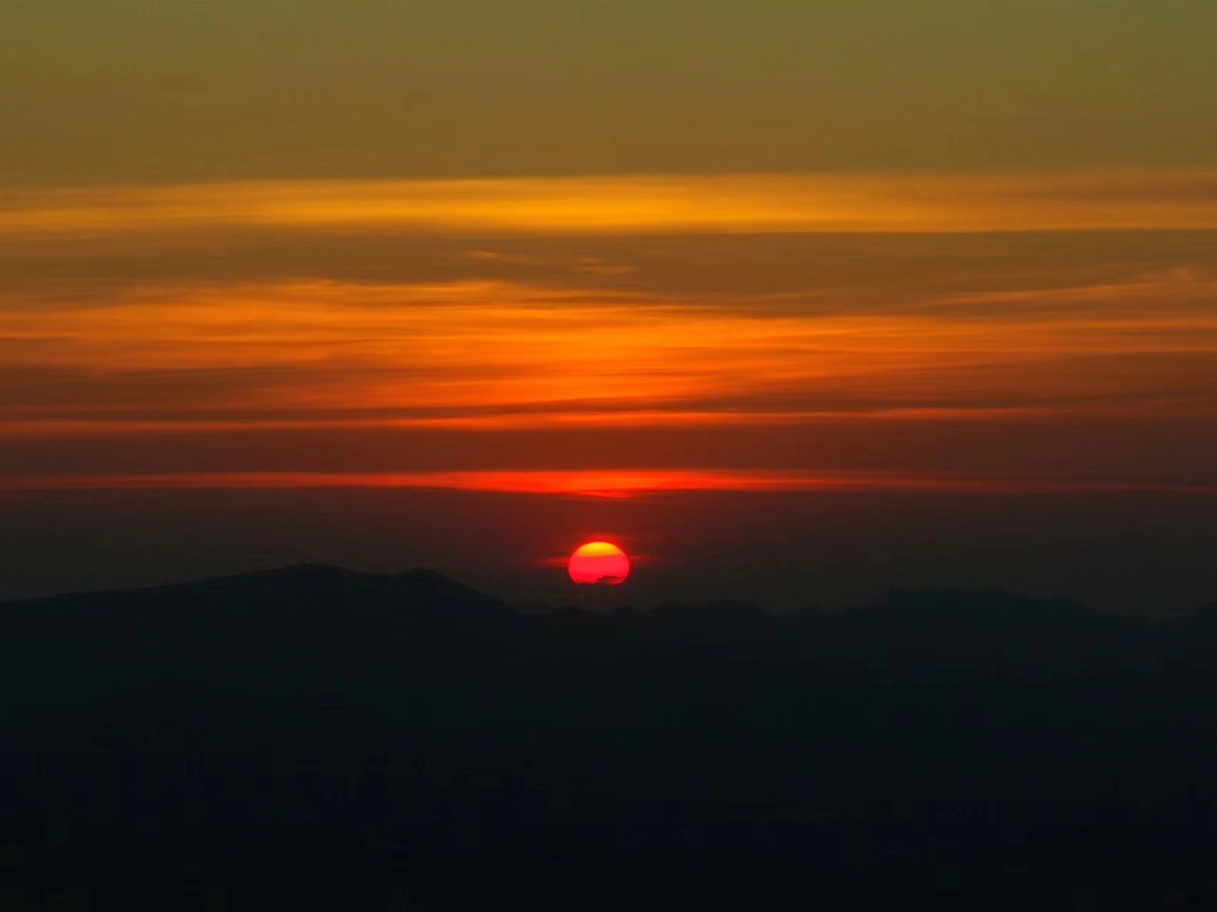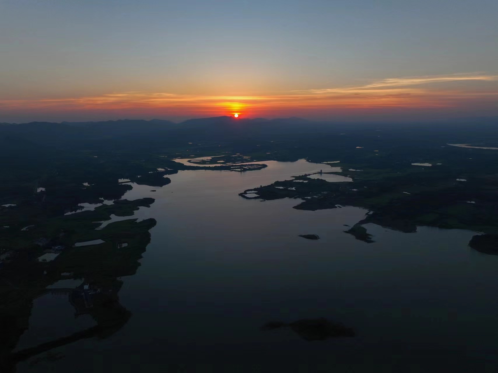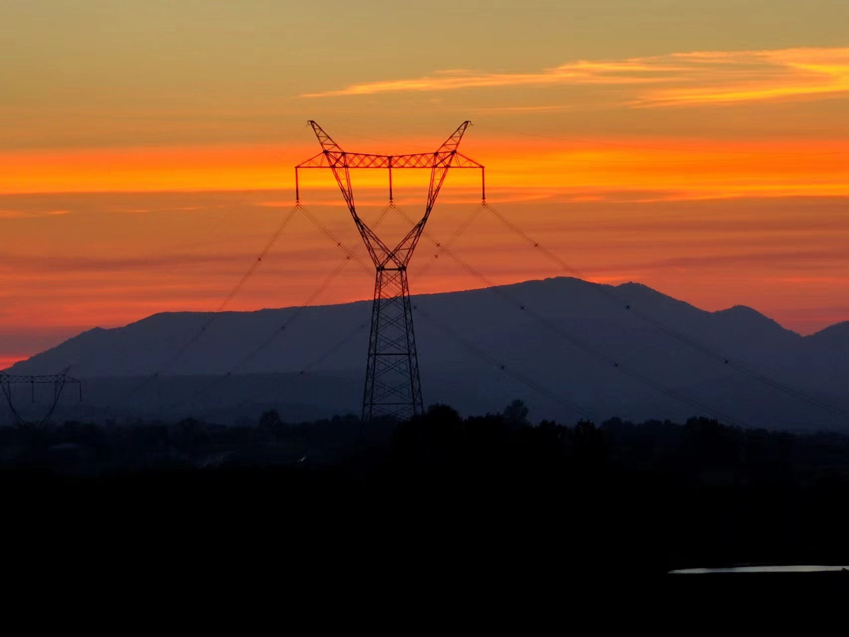 7月21日,橙紅色的晚霞映襯著整個京山城區(qū)。沐浴著霞光,連輸電線路塔看起來都滿目驚艷。日落的瞬間,透過積云層,可以清晰地看到太陽“落山”前投射出最后的光芒。(肖朕天)