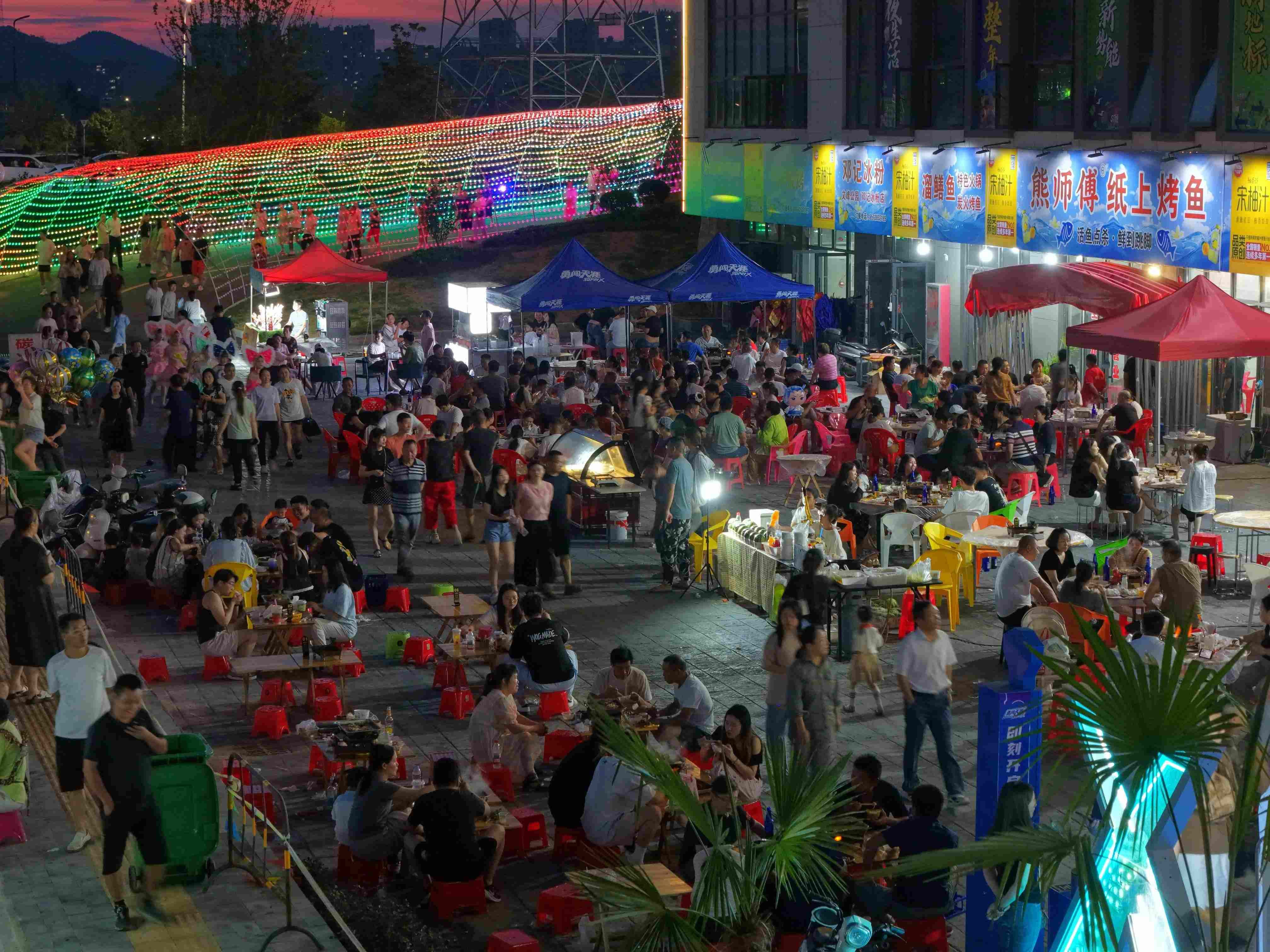 6月24日晚,在中農(nóng)儲?華中(京山)農(nóng)博匯網(wǎng)球特色美食街,“夜經(jīng)濟”熱度悄然升騰。