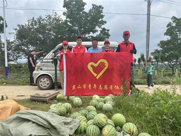 京山青年志愿者助農(nóng)售瓜 供圖 共青團(tuán)京山市委