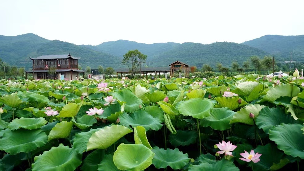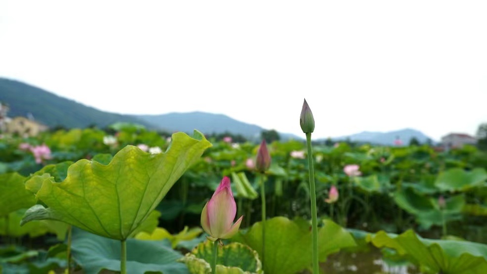 荷塘里荷花競(jìng)相綻放