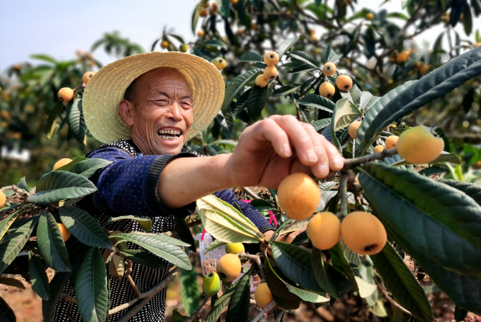 湖北京山孫橋鎮(zhèn)花苑臺村的農(nóng)戶采摘枇杷