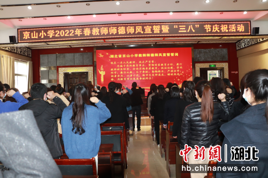 中新網(wǎng)湖北新聞3月18日電 (杜炎炎 黃小明)“廉潔從教,樂于奉獻;勤勉敬業(yè),嚴謹治學;躬身親為,以身示范,做學生的良師益友……”近日,京山市教育組織百余名教師在京山小學禮堂開展師德師風宣誓活動,