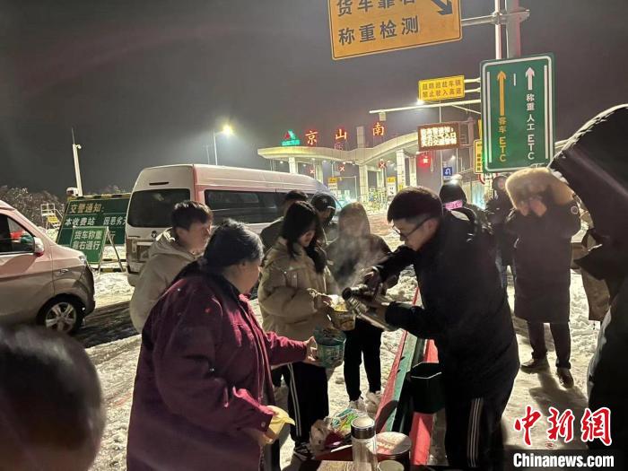 中新網(wǎng)武漢2月5日電 題:湖北京山:大雪寒潮阻歸程 溫暖守護(hù)暖人心 作者 成麗平 余舟 盧琪 近日,湖北京山市遭受凍雨和強(qiáng)降雪,部分道路結(jié)冰無法通行,致使不少車輛滯留路上。京山市高速沿線各村鎮(zhèn)迅速
