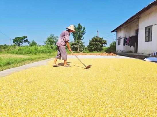 炎炎夏日,京山市錢場鎮(zhèn)玉米喜獲豐收,種植戶們搶抓晴好天氣加緊收割、晾曬、銷售,家家戶戶門前禾場一片金黃。(農村新報通訊員 余靜 周雨薇 攝)