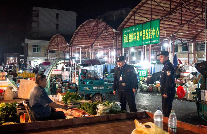 早晨8點剛過,盛夏的驕陽已漸漸火辣起來。位于湖北省京山市新市城區(qū)輕機(jī)大道的京華農(nóng)貿(mào)市場迎來了一天最繁忙的時刻。 “牟姐,曹哥,這些空框子要快點收起來,絆手絆腳影響做生意??!”新市派出所城畈社區(qū)