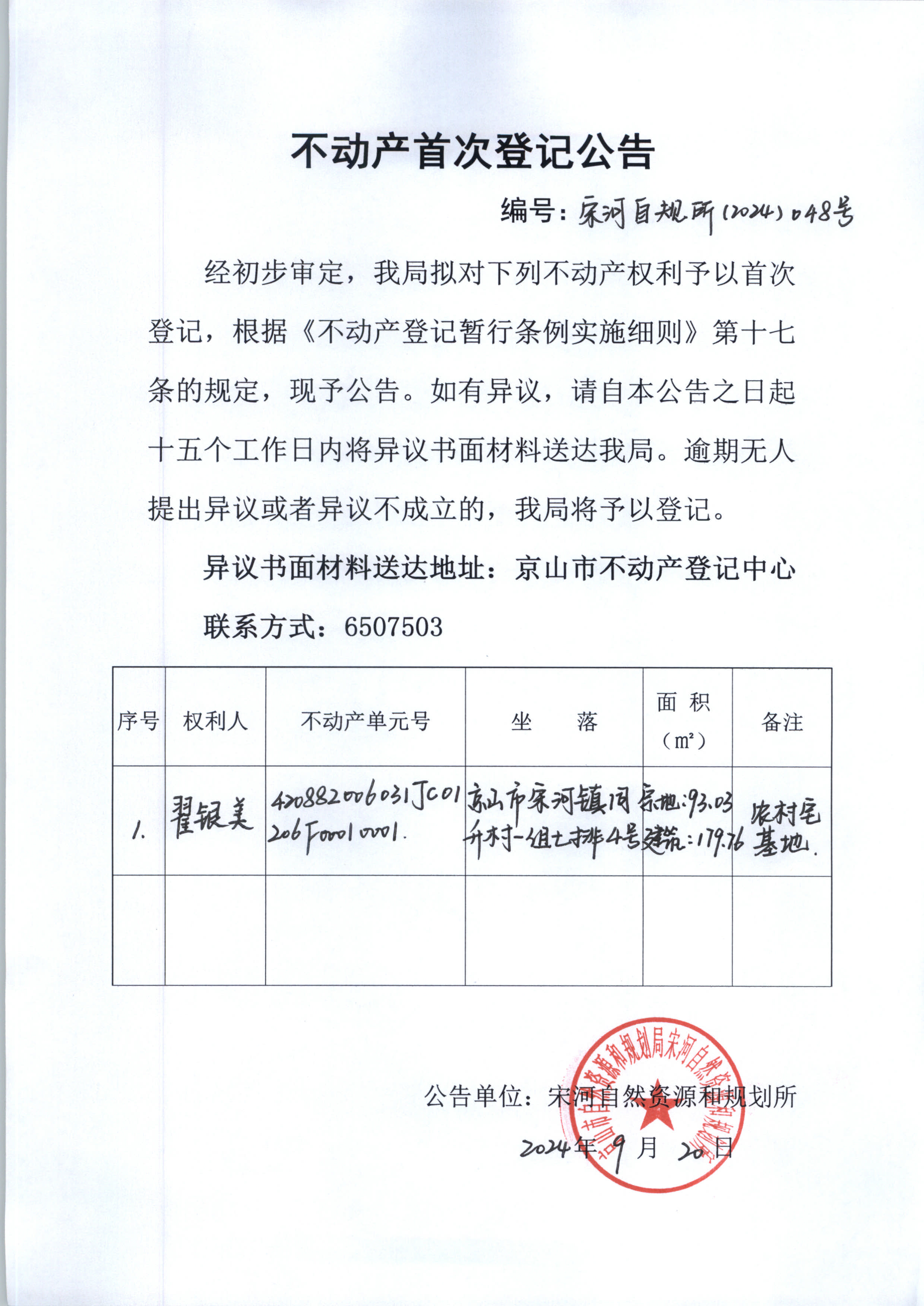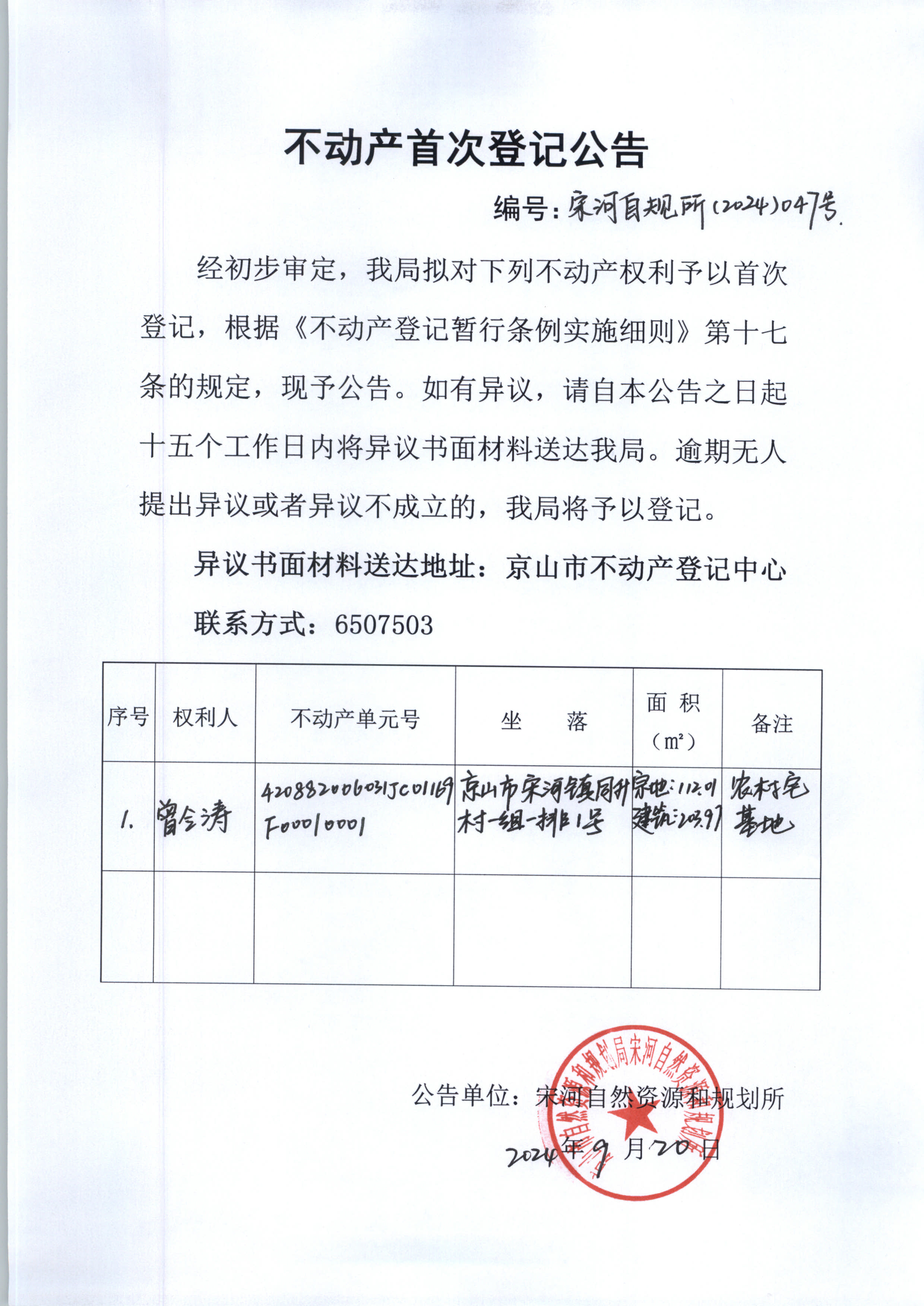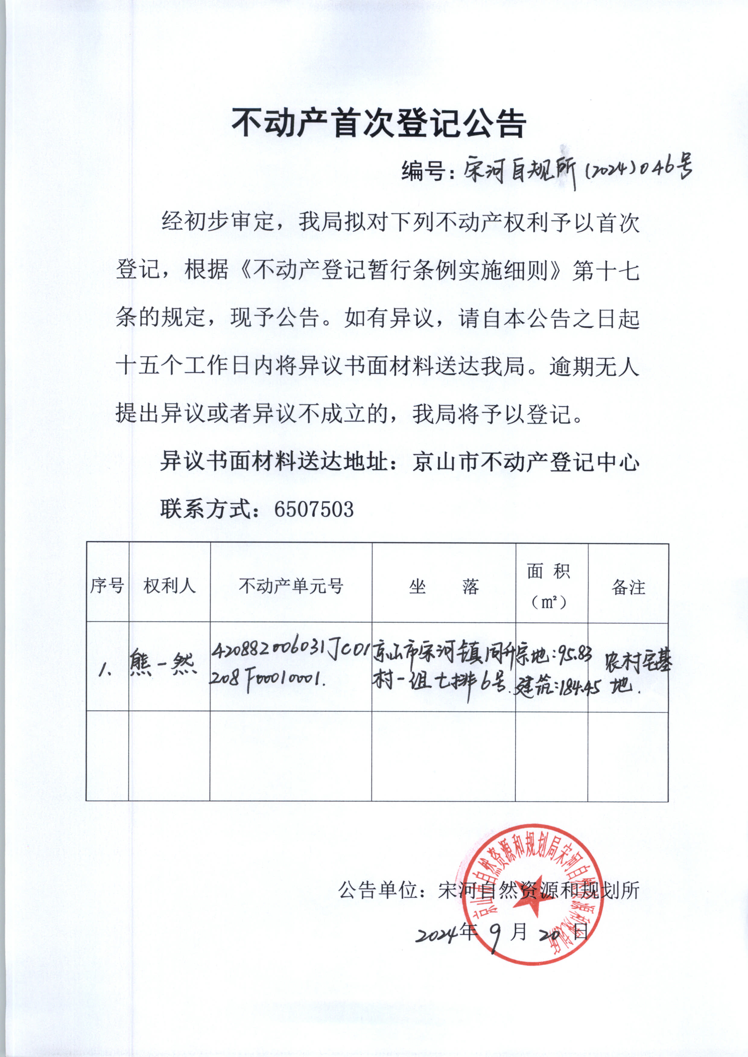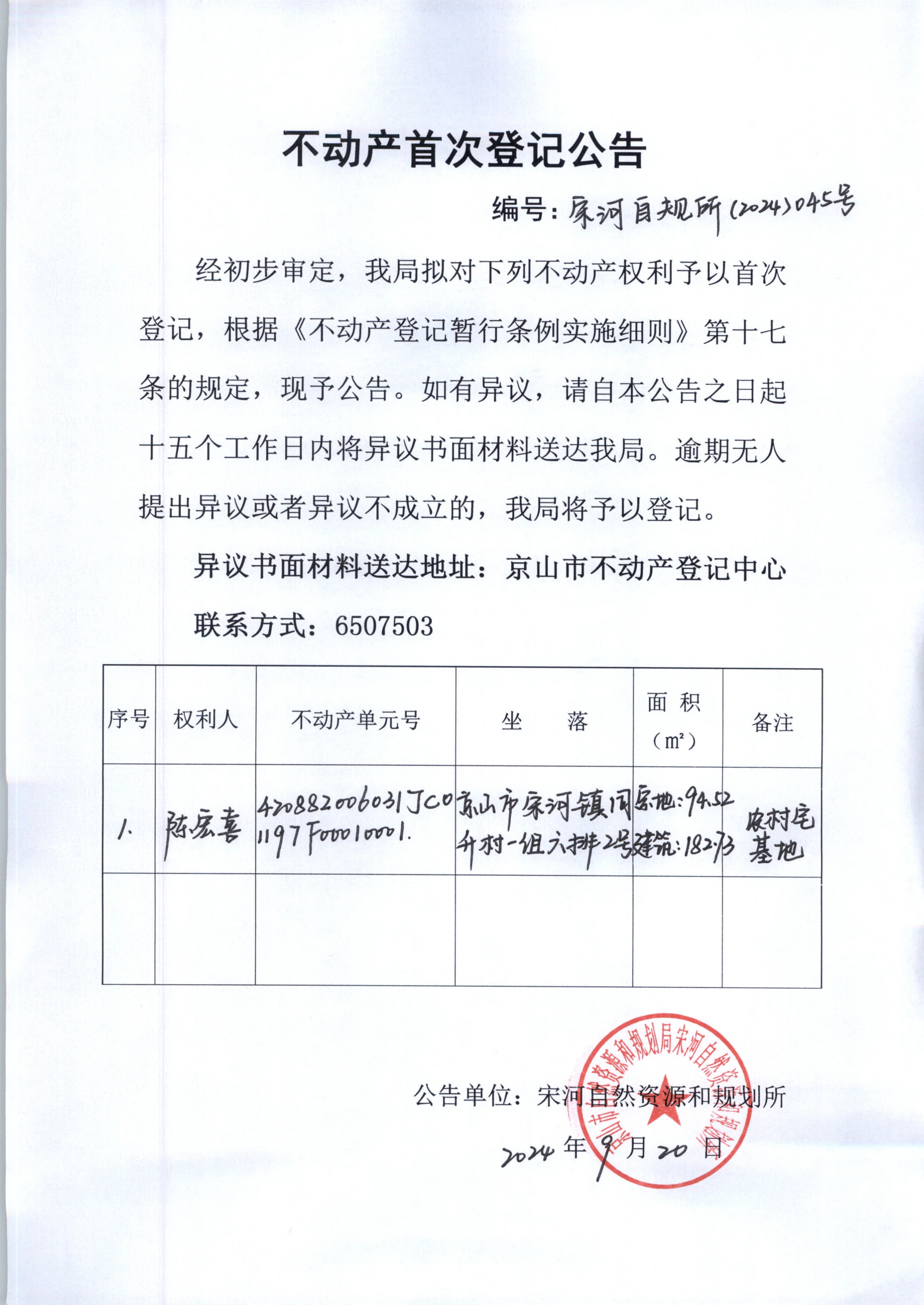 不動產(chǎn)首次登記公告