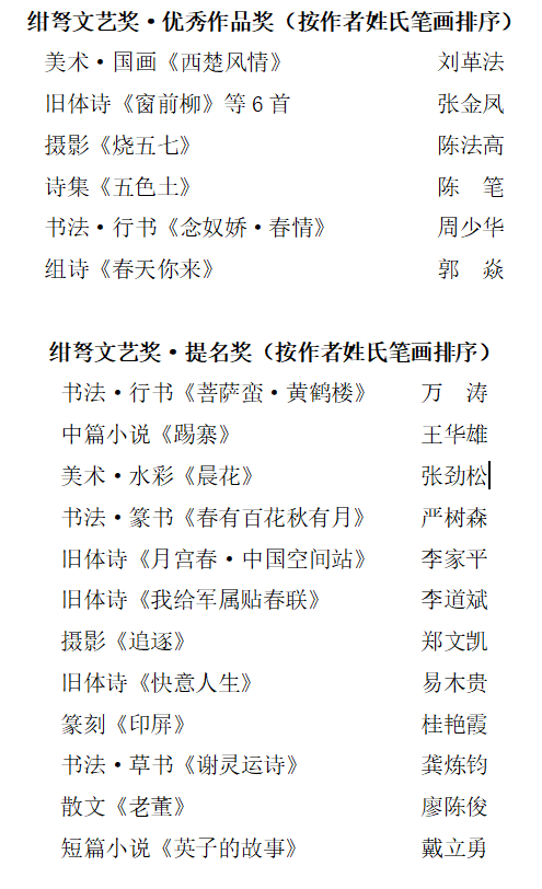 | 關于第八屆“紺弩文藝獎”評審結果的公 示 |