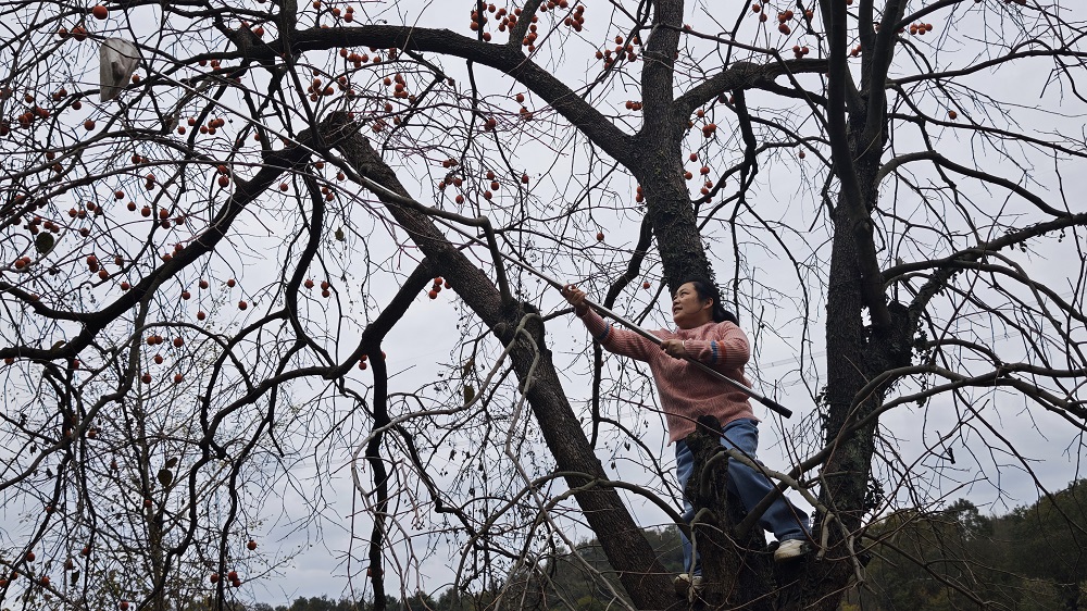 近日,綠林鎮(zhèn)的柿子迎來豐收。沉甸甸的柿子壓彎了枝頭,果皮在陽光照射下泛著透亮的紅暈,甜香四溢。村民們踩著采摘梯爬到柿子樹上,拿著長桿采收遠處的柿子,一勾一拉,柿子就到了手里,成為冬日里一道別樣的鄉(xiāng)村風景線。(陳枝英)