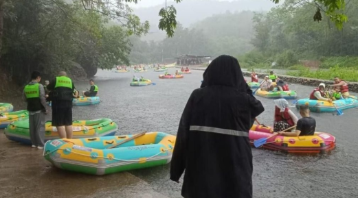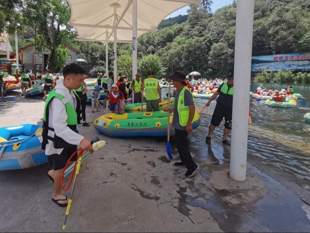 高溫客流雙高峰 綠林鎮(zhèn)干部化身志愿者護航鴛鴦溪漂流