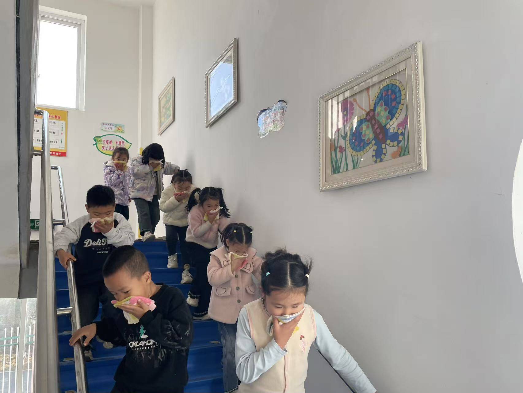 隨著警報(bào)聲響起,在各班教師的有序引導(dǎo)下,孩子們沿著預(yù)先規(guī)劃好的疏散路線,向安全區(qū)域快速撤離,迅速地到達(dá)了指定的集合地點(diǎn)。各班教師第一時(shí)間清點(diǎn)班級(jí)人數(shù),并及時(shí)向園長匯報(bào),整個(gè)演練過程緊張有序、有條不紊。