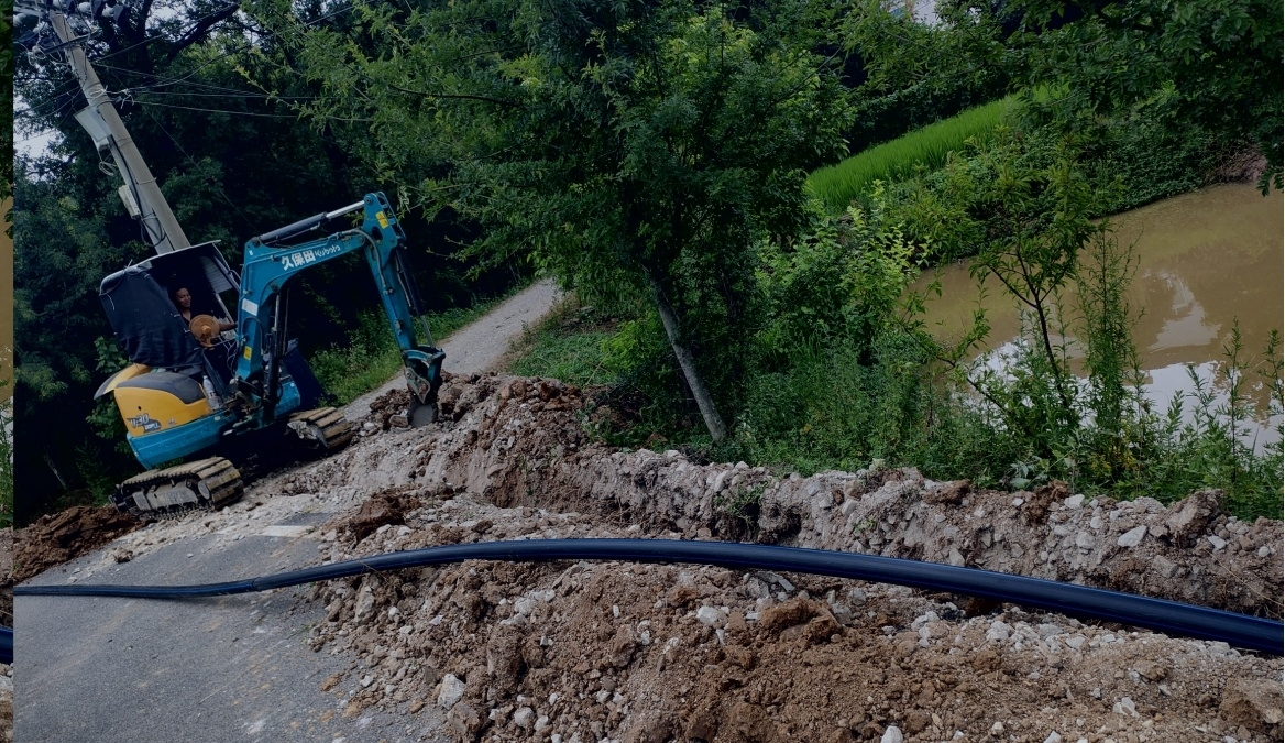 飲水提質(zhì)工程建設(shè)現(xiàn)場(chǎng)“飲水提質(zhì)工程建成后,高潮村的自來水管將接到每家每戶,擰開水龍頭,自來水就嘩嘩地流出來了,洗菜、洗衣、淘米做飯,又干凈又方便?!苯眨瑴厝值廊舜筘?fù)責(zé)人在高潮村三組的自來水入戶施工