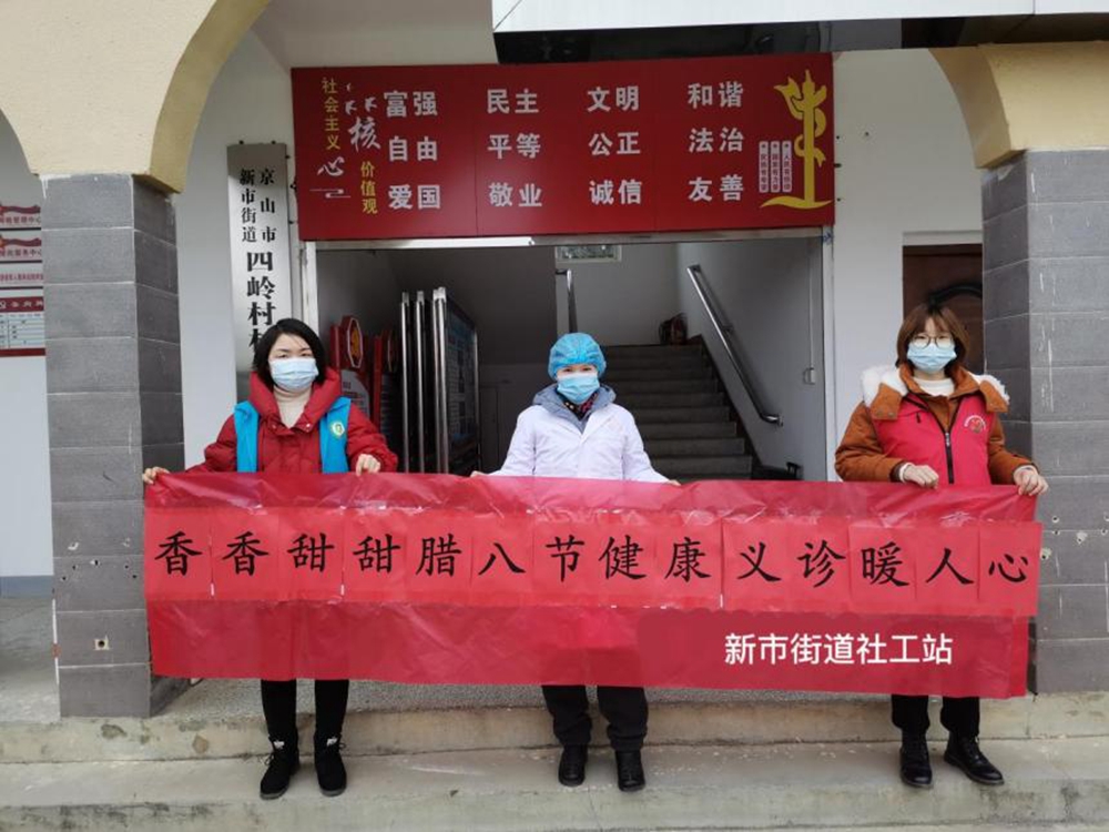 1月10日臘八節(jié),新市街道社工站聯合新市社區(qū)衛(wèi)生服務中心及愛心機構,在四嶺村黨員群眾服務中心開展 “香香甜甜臘八粥 健康義診暖人心”活動。