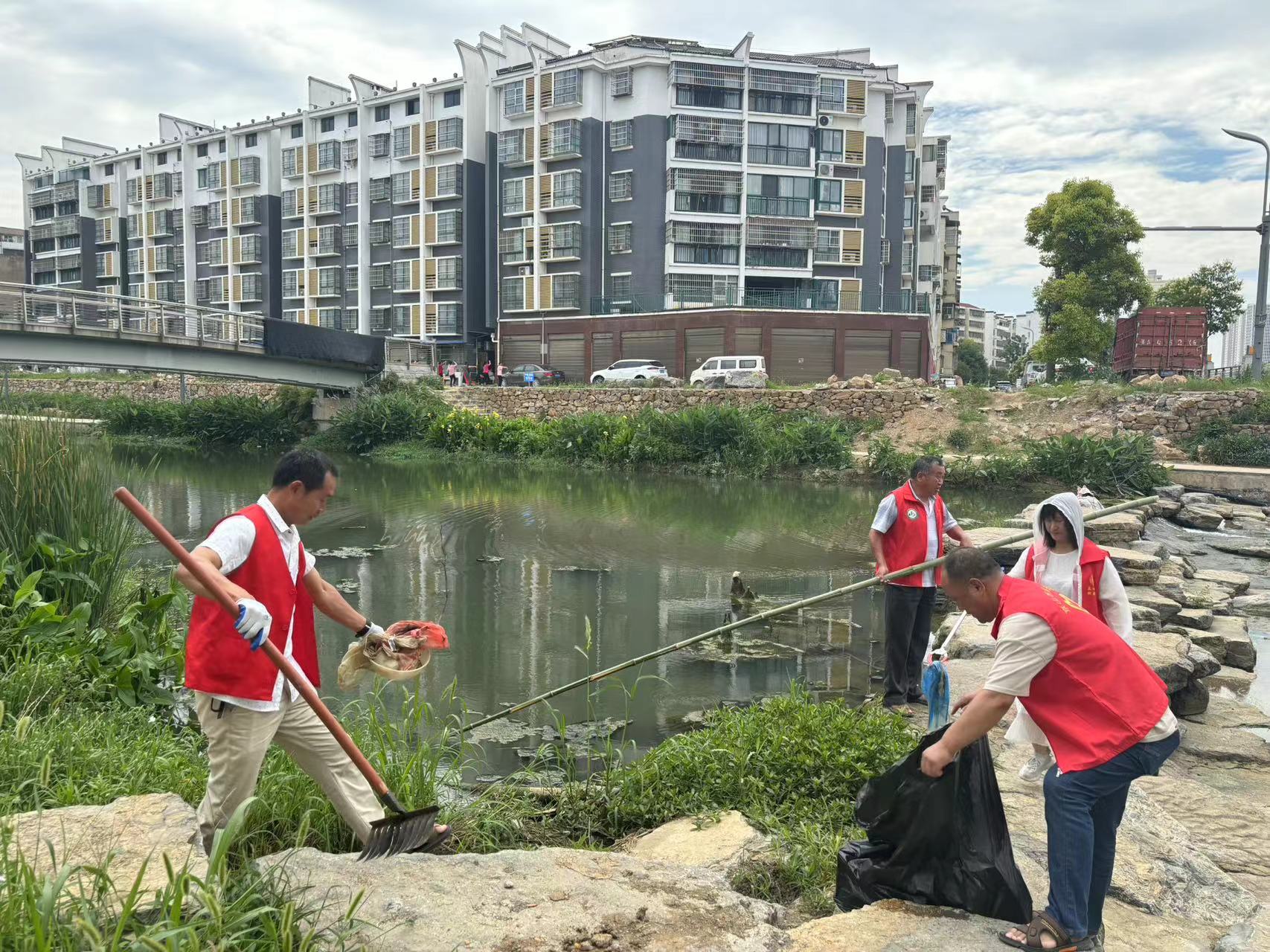 5月29日,新市街道鳳凰堰社區(qū)組織工作人員、科普志愿者,在京山河周圍開展“清保行動”,共同營造綠色生態(tài)的美好家園。