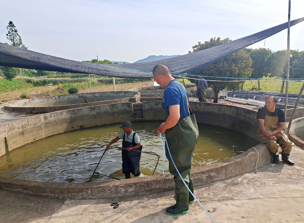 當(dāng)天,專業(yè)合作社空氣中彌漫著淡淡的水腥味,池塘邊、孵化池內(nèi)都是一片熱火朝天的工作景象。