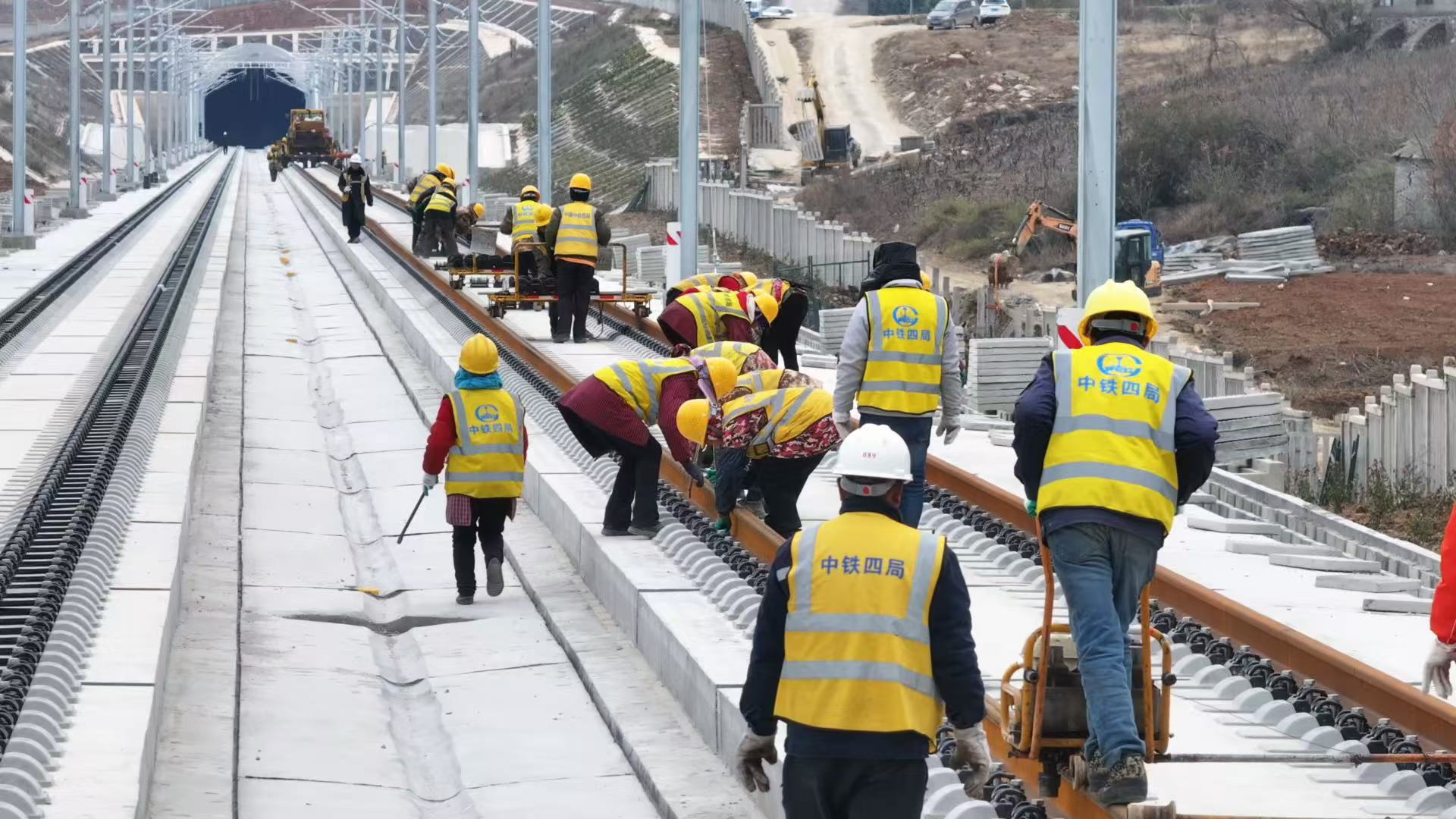 12月22日,在滬渝蓉高鐵武荊宜雁門口段響堂灣大橋鋪軌施工現(xiàn)場,隨著中鐵四局八分公司的一臺多功能牽引車緩緩將一對500米長鋼軌穩(wěn)穩(wěn)鋪設(shè)在無砟道床上,標(biāo)志著滬渝蓉高鐵武荊宜雁門口段進(jìn)入鋪軌施工階段。