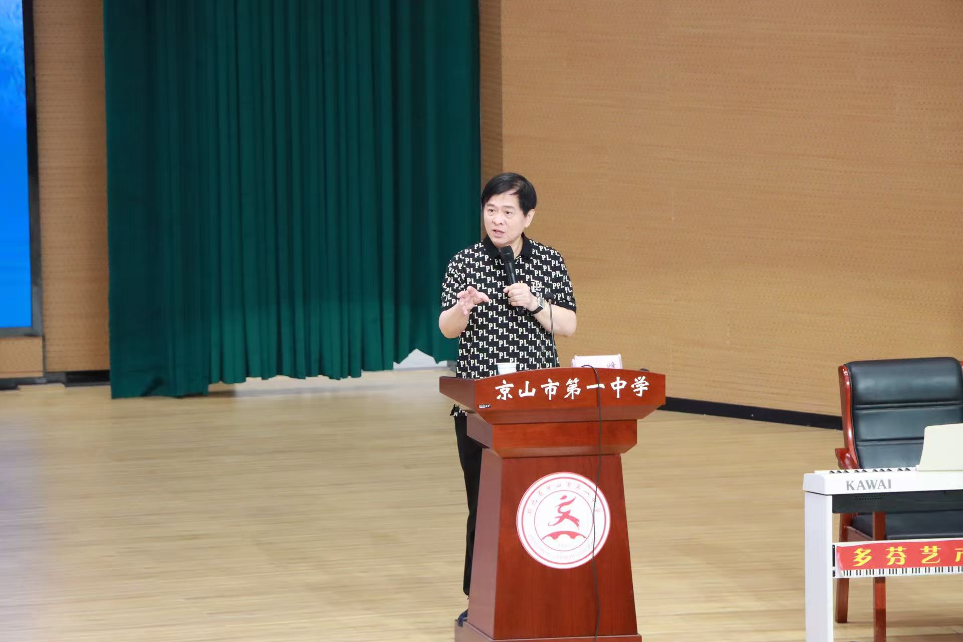 “我從京山一中畢業(yè)整整五十年了,今天我重回母校參加姚峰老師的音樂講座,感到特別開心?!币恢痹谟靡魳肺幕床腹枢l(xiāng)的京山籍詞作家熊紅動情地說,“作為一個在外工作的音樂人,希望我們家鄉(xiāng)的音樂事業(yè)越來越好?!?/p>