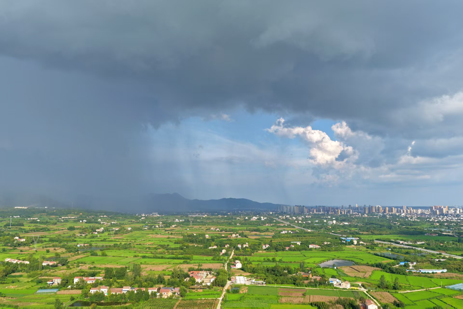 8月14日,走進(jìn)新市街道鄢河村附近,可以看到,整個(gè)天空出現(xiàn)了一邊晴天、一邊下雨的景象。前一秒還是晴天,隨著“局部降雨”的過(guò)境,轉(zhuǎn)瞬變成了降雨天氣。