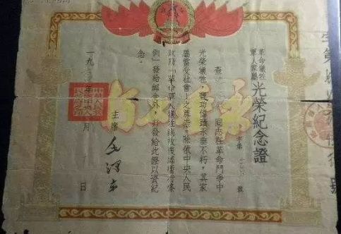 | 毛澤東,為京山烈士袁傳闊簽署榮譽(yù)證書 |