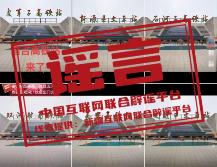 | 今日辟謠 謠 言 新疆多地建高鐵站?真相:近日,新疆多地流傳標(biāo)有“瑪納斯高鐵站”“新源縣火車站”“北泉鎮(zhèn)高鐵站”“石河子高鐵站”等字樣的短視頻,并配有“某縣高鐵站要來了”“現(xiàn)在出行太方便了”等文字, |