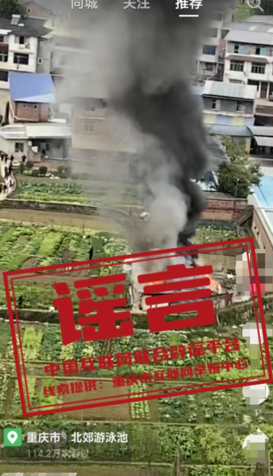 | 今日辟謠 謠 言 重慶南川幾個小孩把他人房子燒了?真相:近日,網(wǎng)傳重慶南川“幾個小孩子把別人房子燒了”,該視頻IP定位為“重慶市北郊游泳池”,畫面顯示一民房處于著火狀態(tài),引發(fā)關(guān)注。經(jīng)重慶南川警方調(diào)查 |