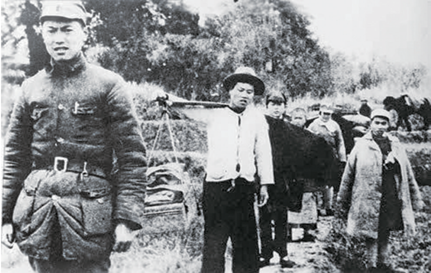 李先念(左一)率新四軍豫鄂挺進(jìn)縱隊(duì)進(jìn)入鄂中地區(qū)?!鲑Y料圖片