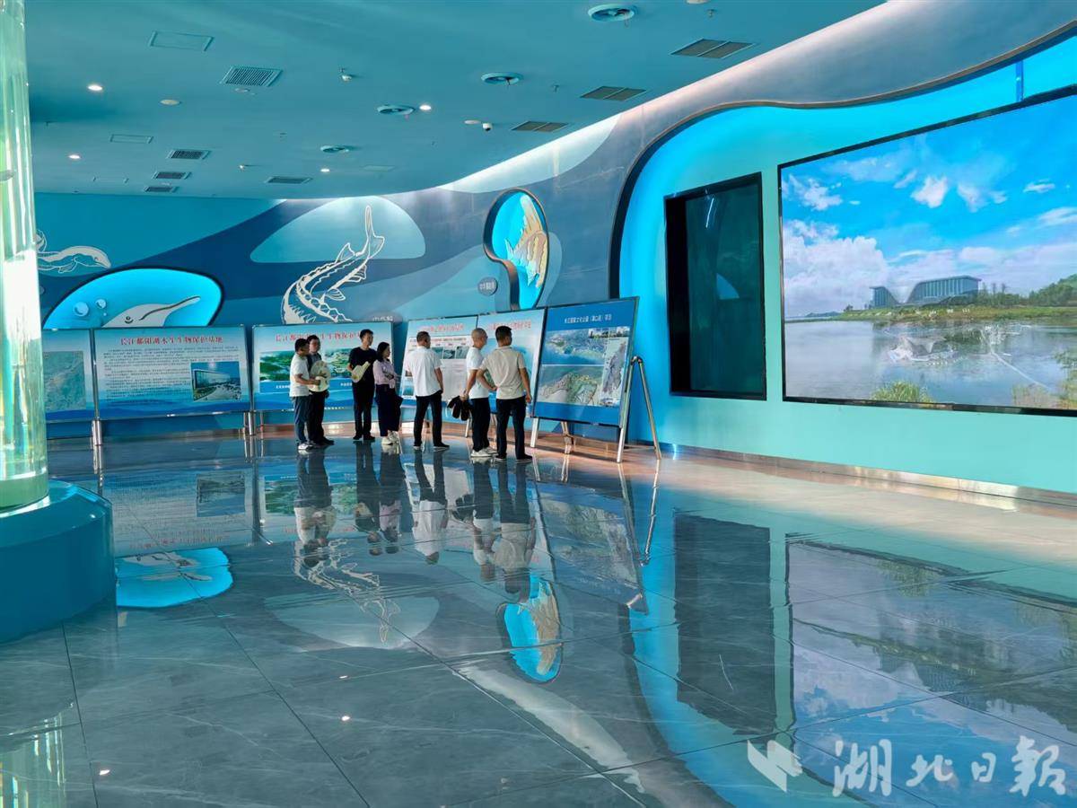 天鵝洲故道“長江江豚苑”內(nèi)有世界小型鯨類遷地保護示范基地科教中心,將江豚保護與科普文旅有機結(jié)合。