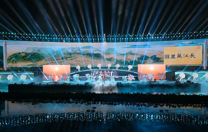 水幕之上,光影交錯,《萬里長江圖》緩緩鋪展,呈現(xiàn)浩蕩江水、千年遺跡、時代新象。耳畔響起的經典之作《三峽情》,熟悉的旋律,卻平添了些許新韻味。