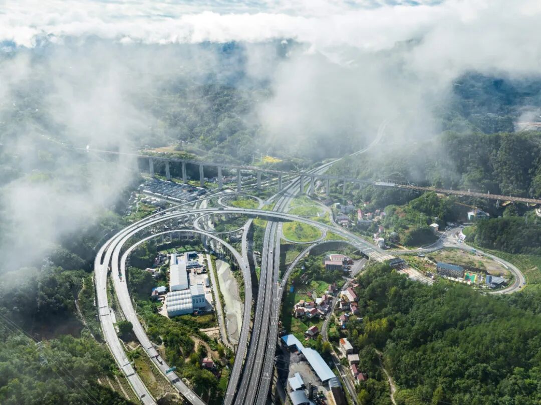 雨后初晴,在保神高速與呼北高速交會(huì)處的后坪互通樞紐周邊,青山、云霧與縱橫的路網(wǎng)相映,宛如仙境。保神高速公路五道峽收費(fèi)站車(chē)流不息,小汽車(chē)、客車(chē)、貨車(chē)等往來(lái)穿梭,一派繁忙景象。