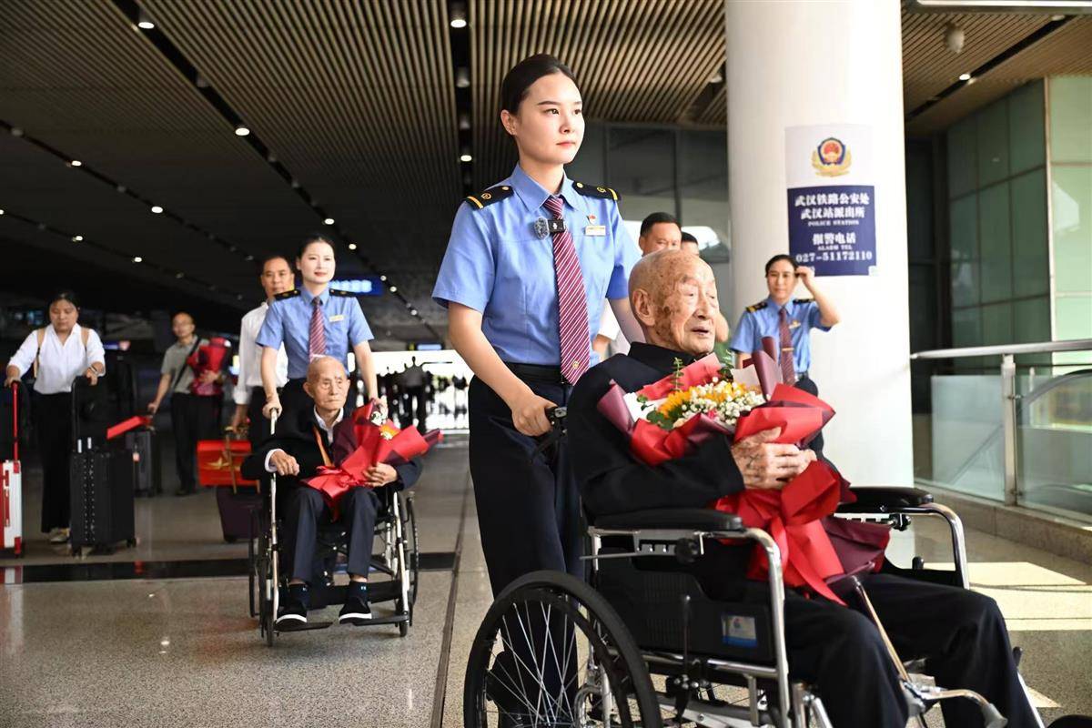 全車廂乘客向他們熱烈鼓掌!兩位百歲抗戰(zhàn)老兵載譽(yù)返回武漢